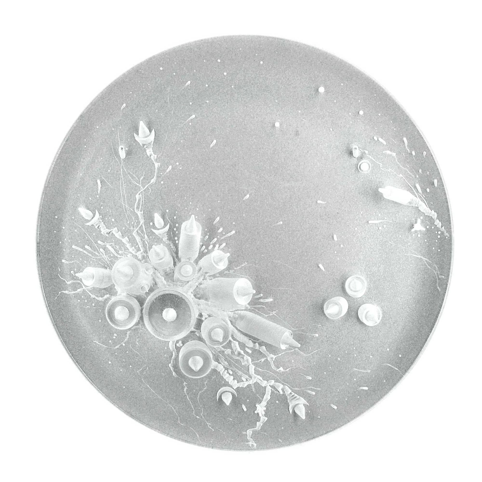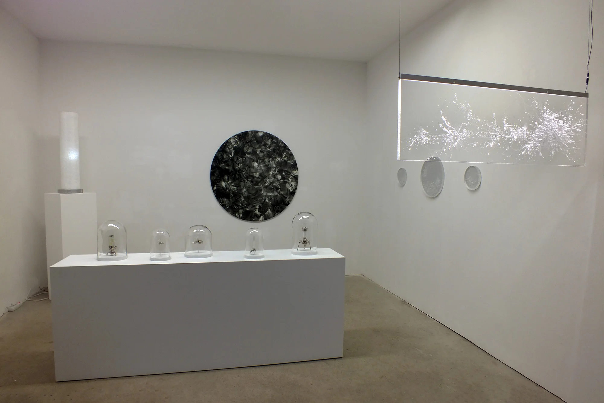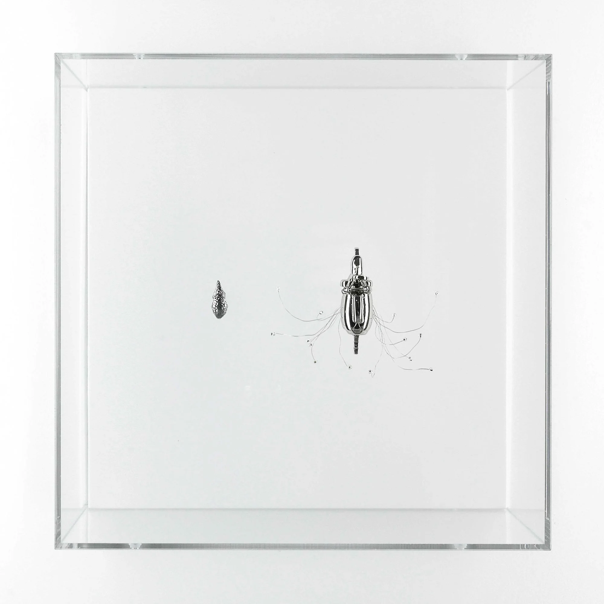 L’exposition nous plonge dans un univers fictionnel où l’artiste et le scientifique se confondent pour générer des spécimens bio-technologiques (sculptures et impressions numériques) évoluant dans un micro (ou macro) environnement aux allures science-fictionnelles. Cette référence renvoie le spectateur à un archétype de l’imaginaire technologique dans lequel « tout est possible ». Jouant avec la porosité des frontières entre le low-tech et le high tech, les œuvres de l’exposition révèlent une esthétique surréaliste. L’exposition donne à voir des créatures donnant l’impression d’être tantôt futuristes et contrôlées génétiquement en laboratoire, tantôt préhistoriques et fossilisées.
