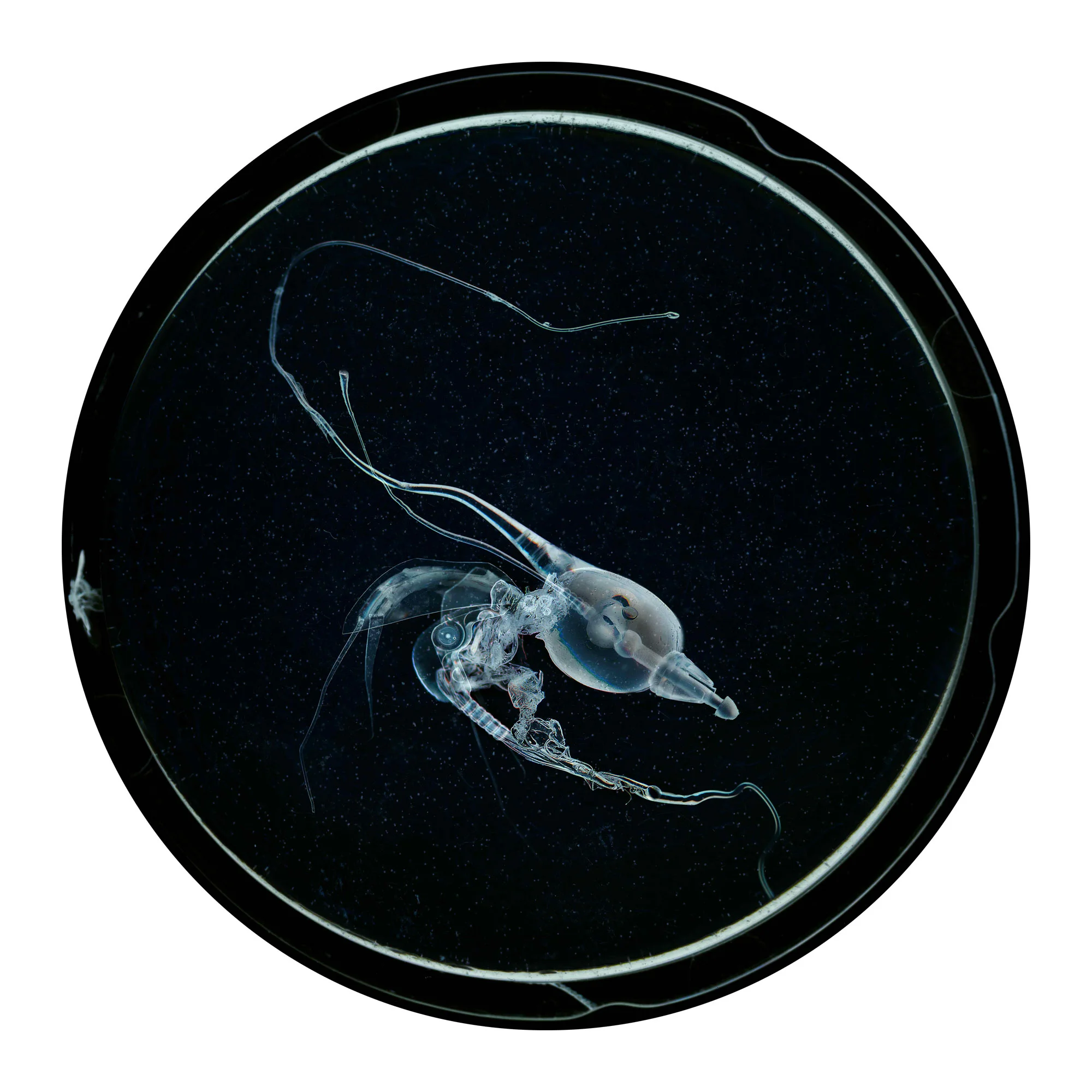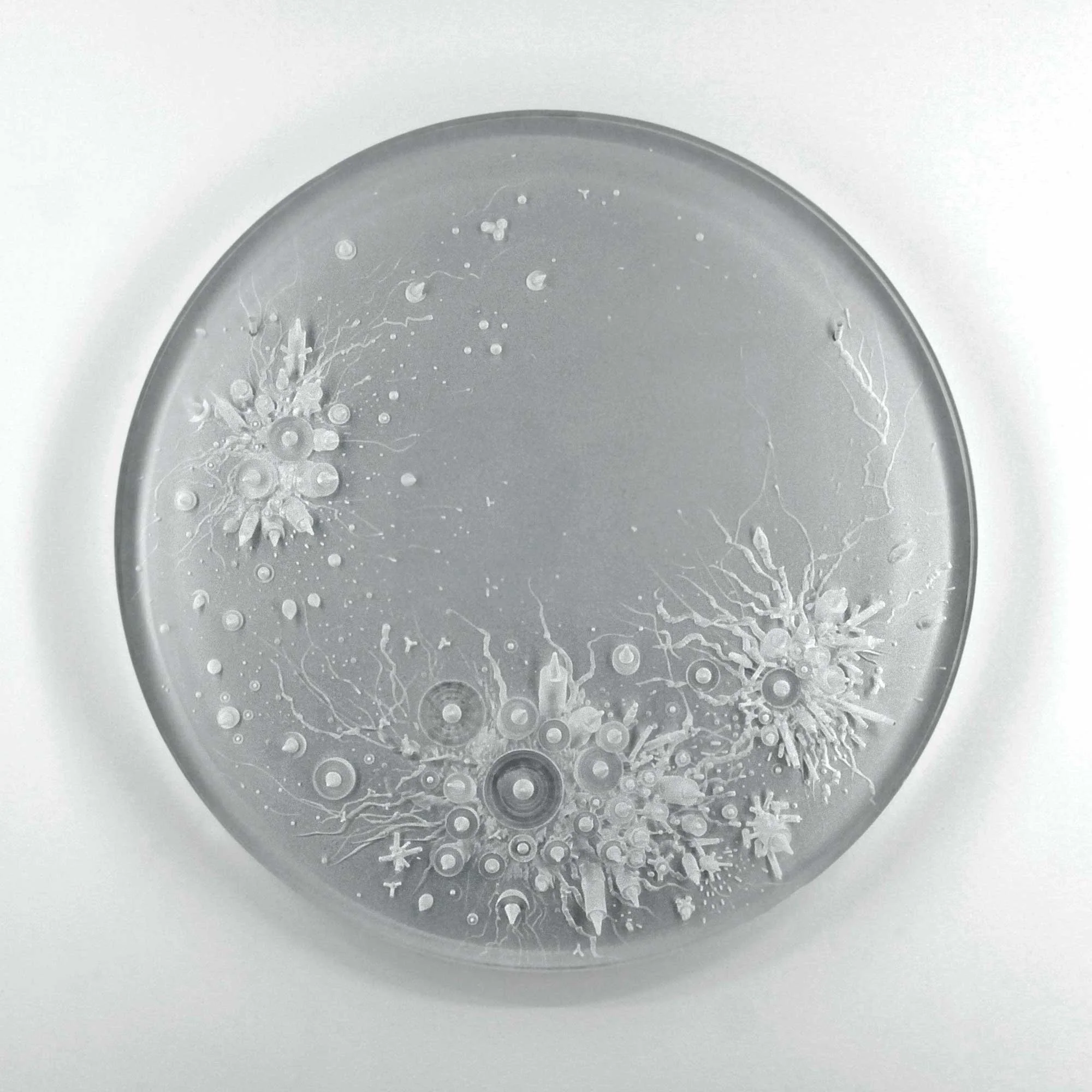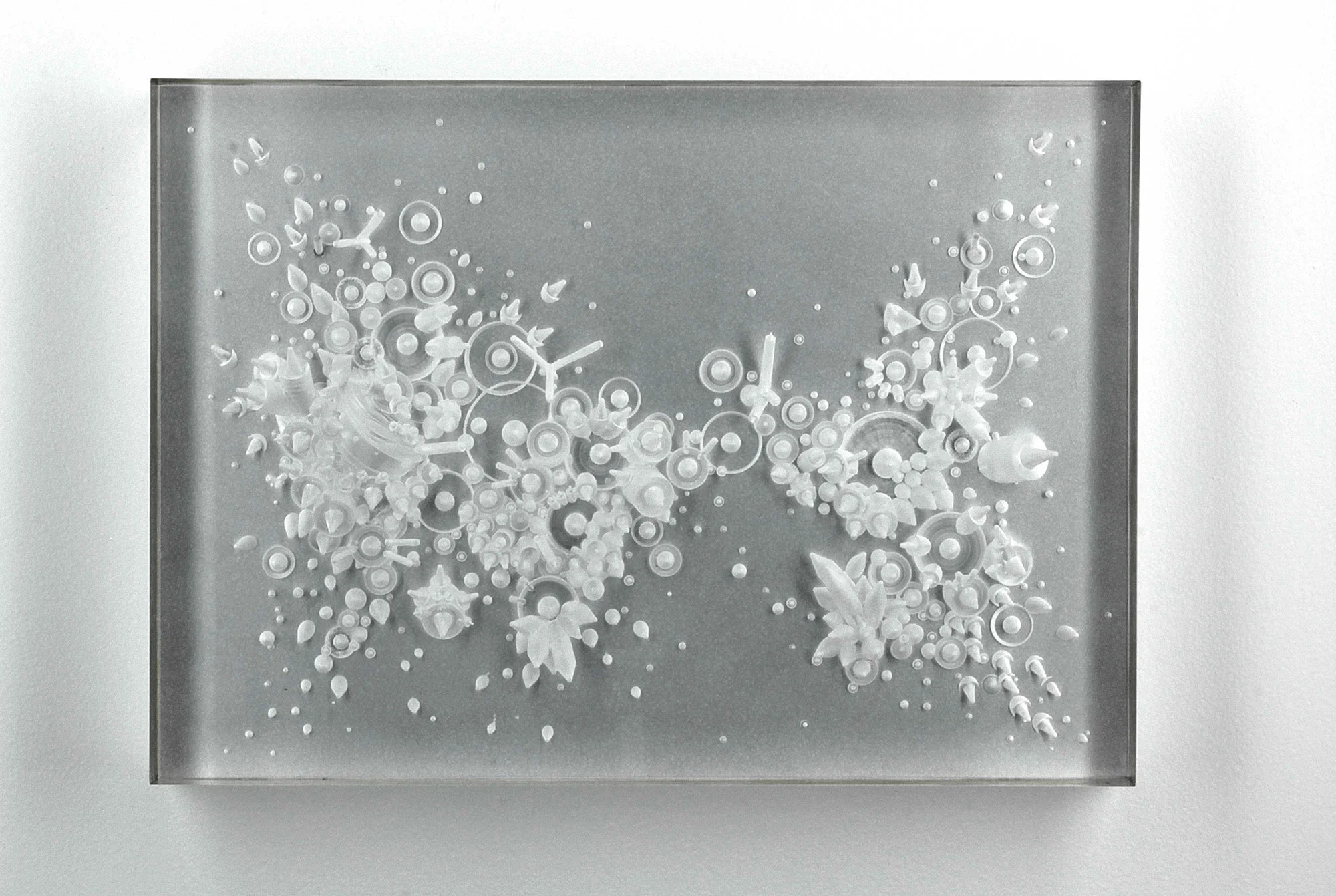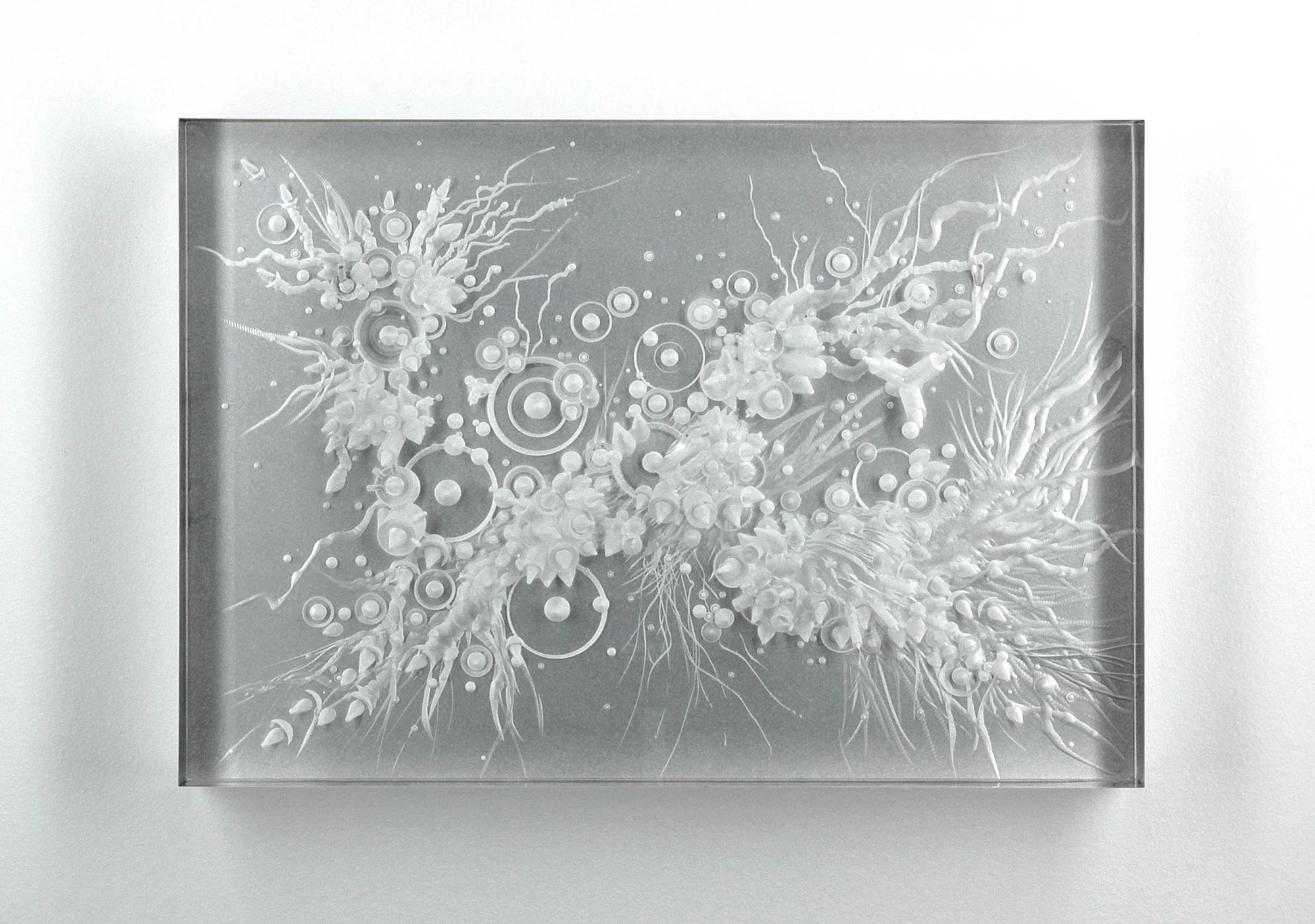 L’exposition nous plonge dans un univers fictionnel où l’artiste et le scientifique se confondent pour générer des spécimens bio-technologiques (sculptures et impressions numériques) évoluant dans un micro (ou macro) environnement aux allures science-fictionnelles. Cette référence renvoie le spectateur à un archétype de l’imaginaire technologique dans lequel « tout est possible ». Jouant avec la porosité des frontières entre le low-tech et le high tech, les œuvres de l’exposition révèlent une esthétique surréaliste. L’exposition donne à voir des créatures donnant l’impression d’être tantôt futuristes et contrôlées génétiquement en laboratoire, tantôt préhistoriques et fossilisées.