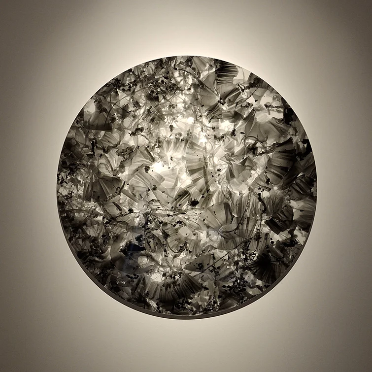 “Le projet d’exposition D.E.Mo s’inscrit dans le cadre d’une investigation de longue haleine menée par Laurent Lamarche sur les phénomènes optiques et le potentiel de transformation de la matière. Cette seconde itération du projet, qui se veut progressif et évolutif, poursuit la réflexion entamée au Musée régional de Rimouski du 4 décembre 2014 au 8 mars 2015. EXPRESSION et l’institution muséale rimouskoise étant, de par leurs mandats, de hauts lieux de recherche, il a rapidement été conclu que ces expositions mettraient à profit ce désir d’avancement des connaissances et d’opter pour une approche expérimentale, transformant ces lieux de culture en laboratoires. D.E.Mo se veut donc beaucoup plus qu’une simple exposition mettant le public en contact avec l’œuvre. À la fois finalité et processus, le projet est l’occasion de présenter des expériences préliminaires ou intermédiaires, de confirmer ou d’infirmer des hypothèses ainsi que d’effectuer un retour sur les démarches artistique et technologique menées par Lamarche.“