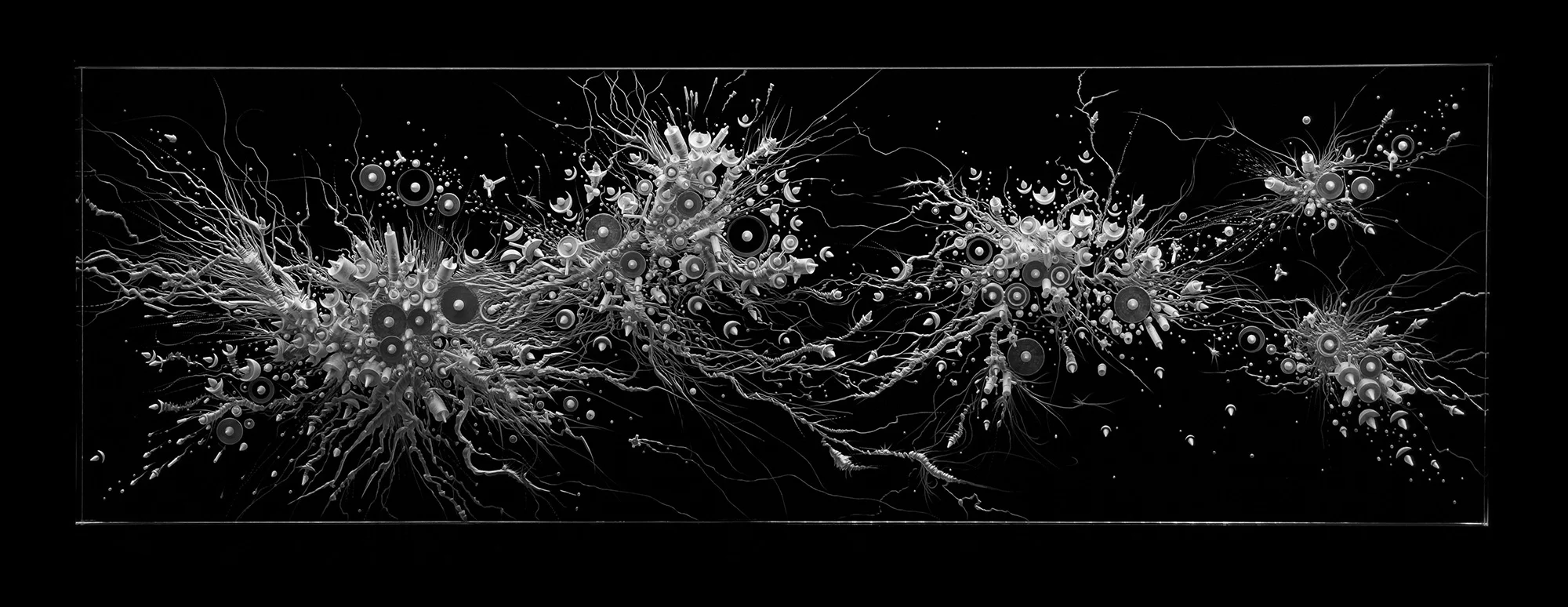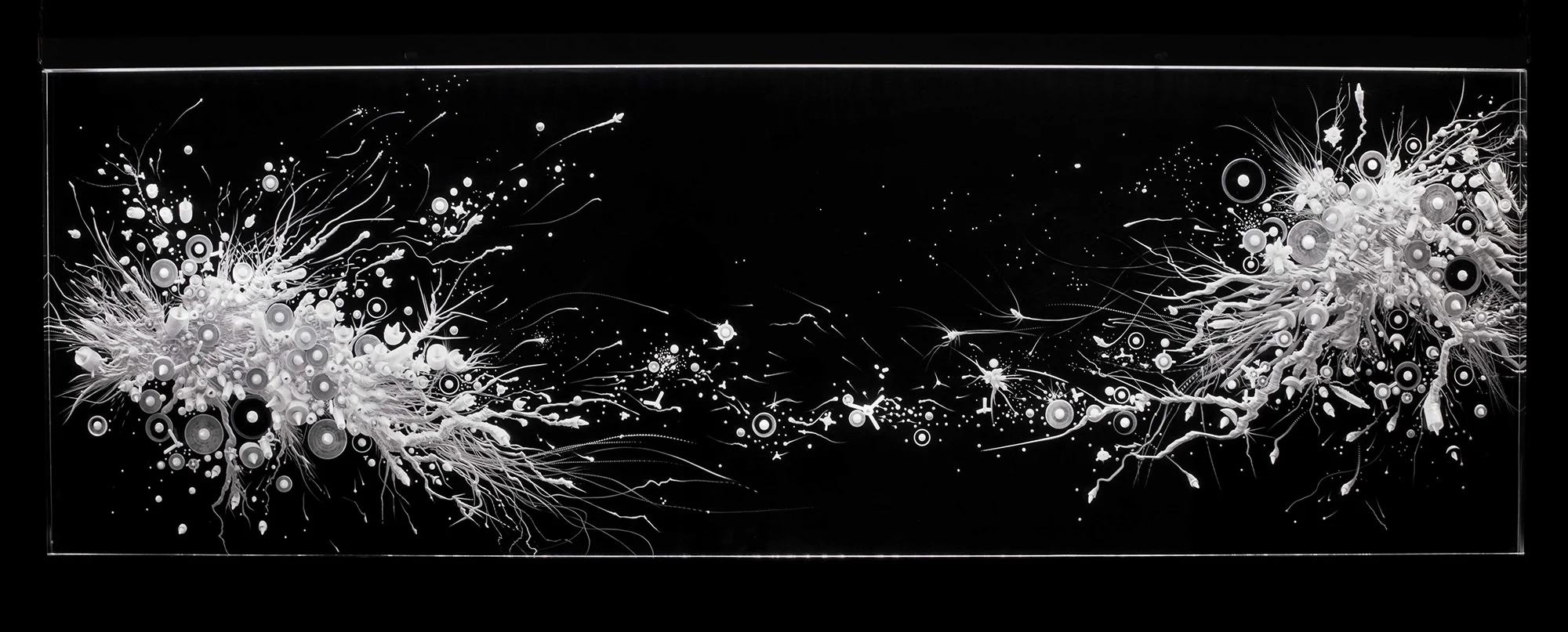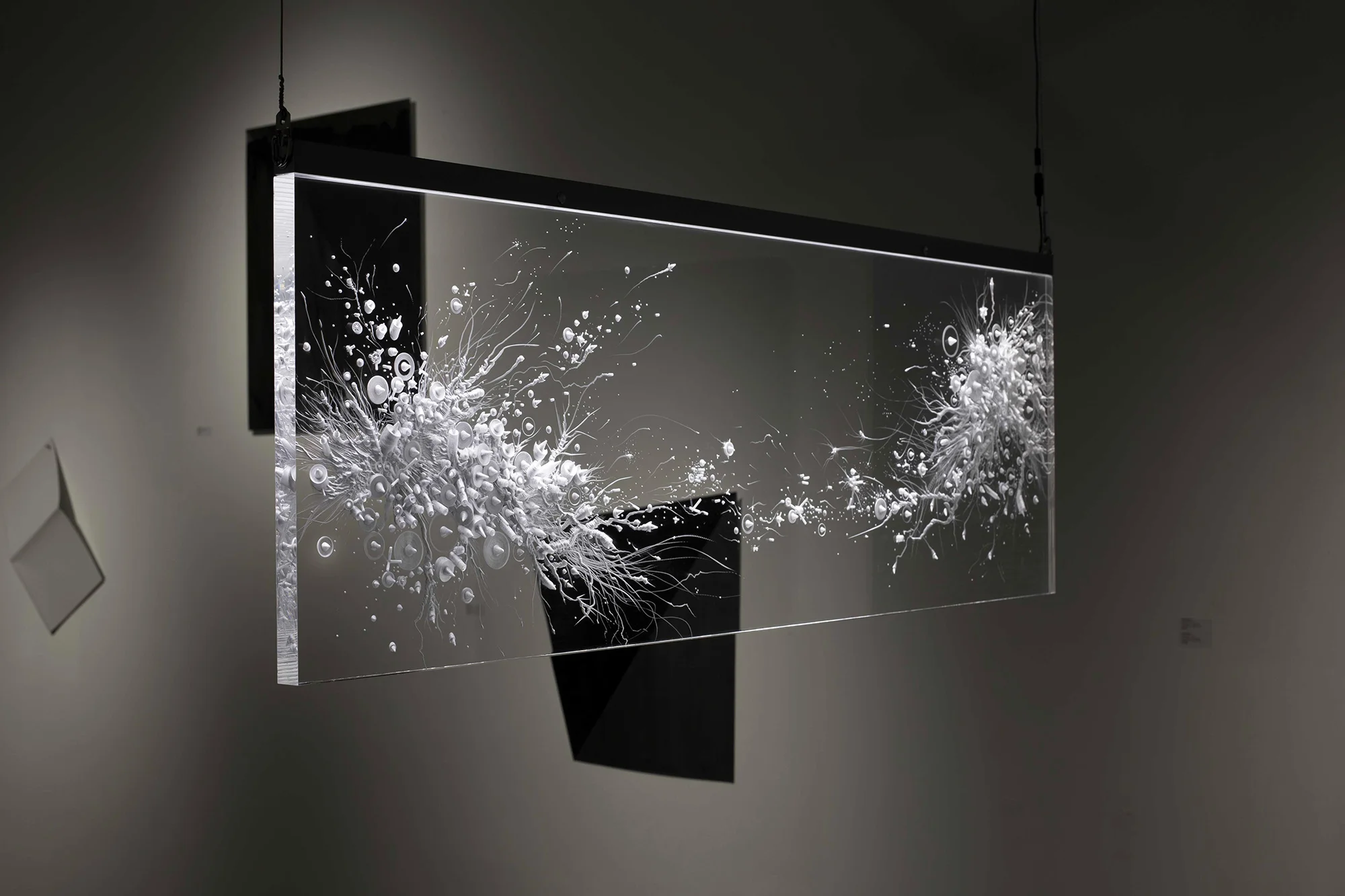 Technique : plexiglas gravé, aluminium, éclairage LED.