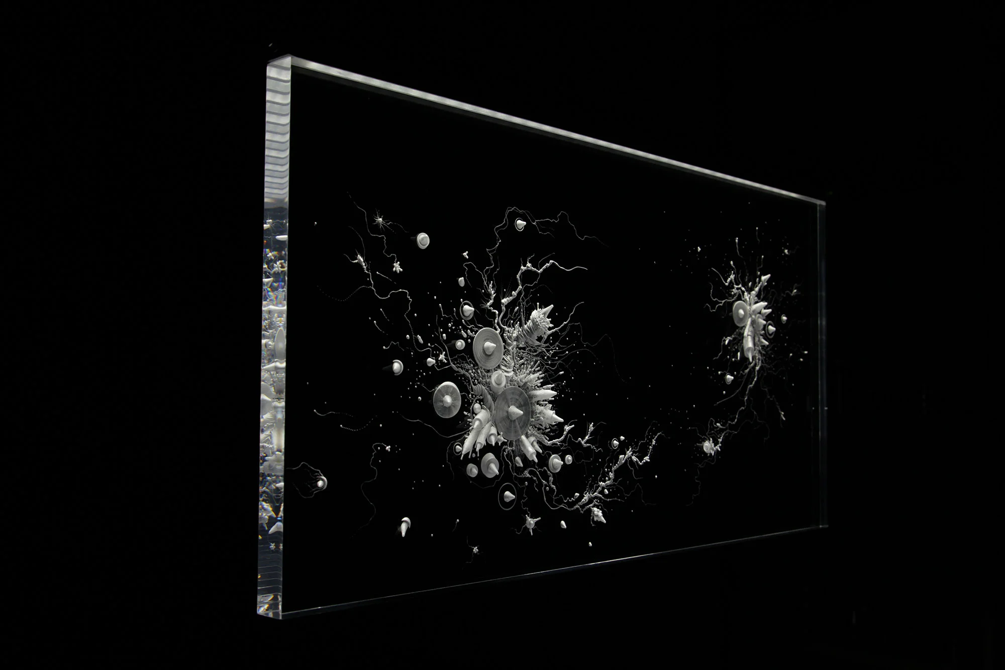 Technique : plexiglas gravé, aluminium, éclairage LED.