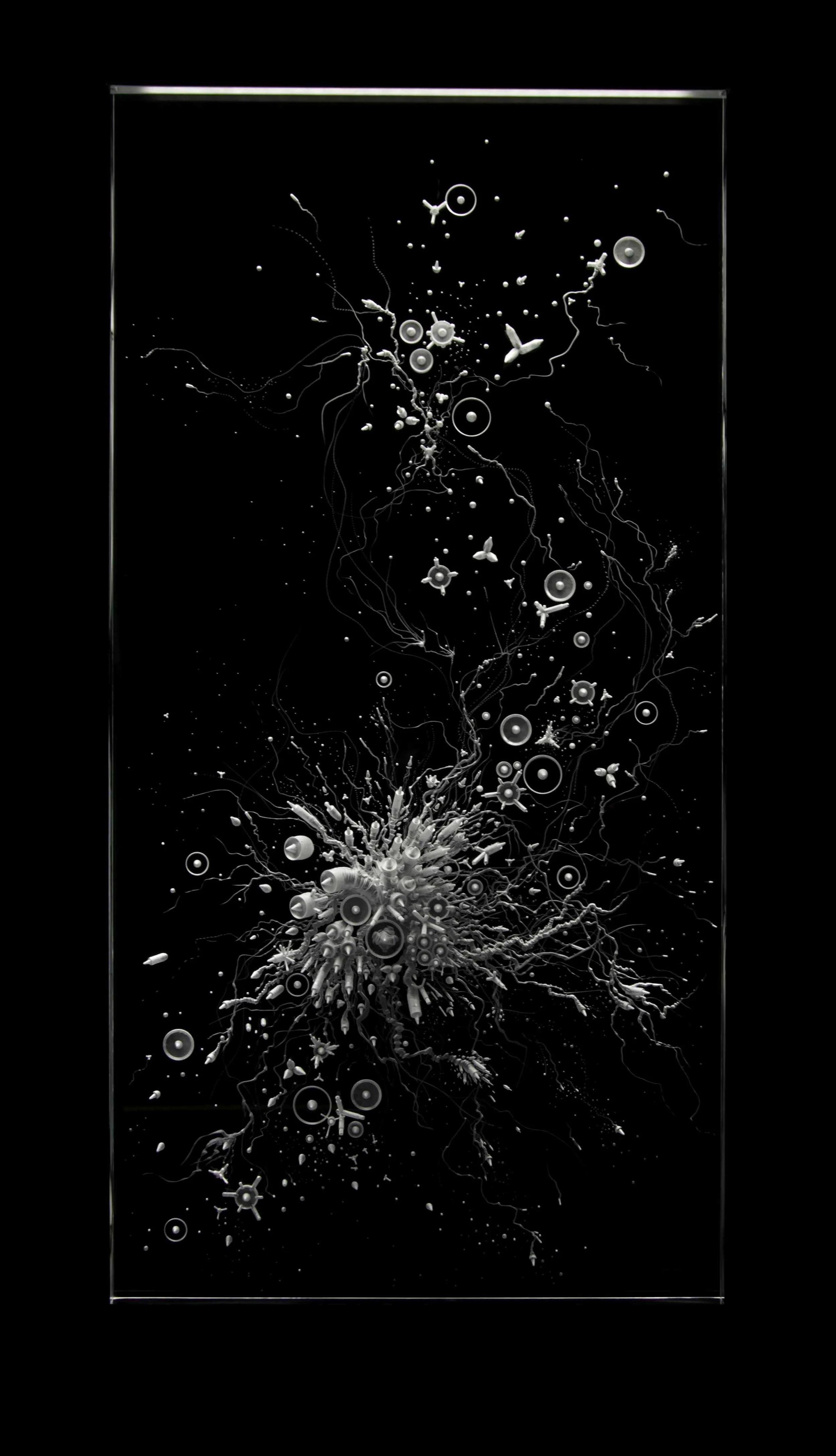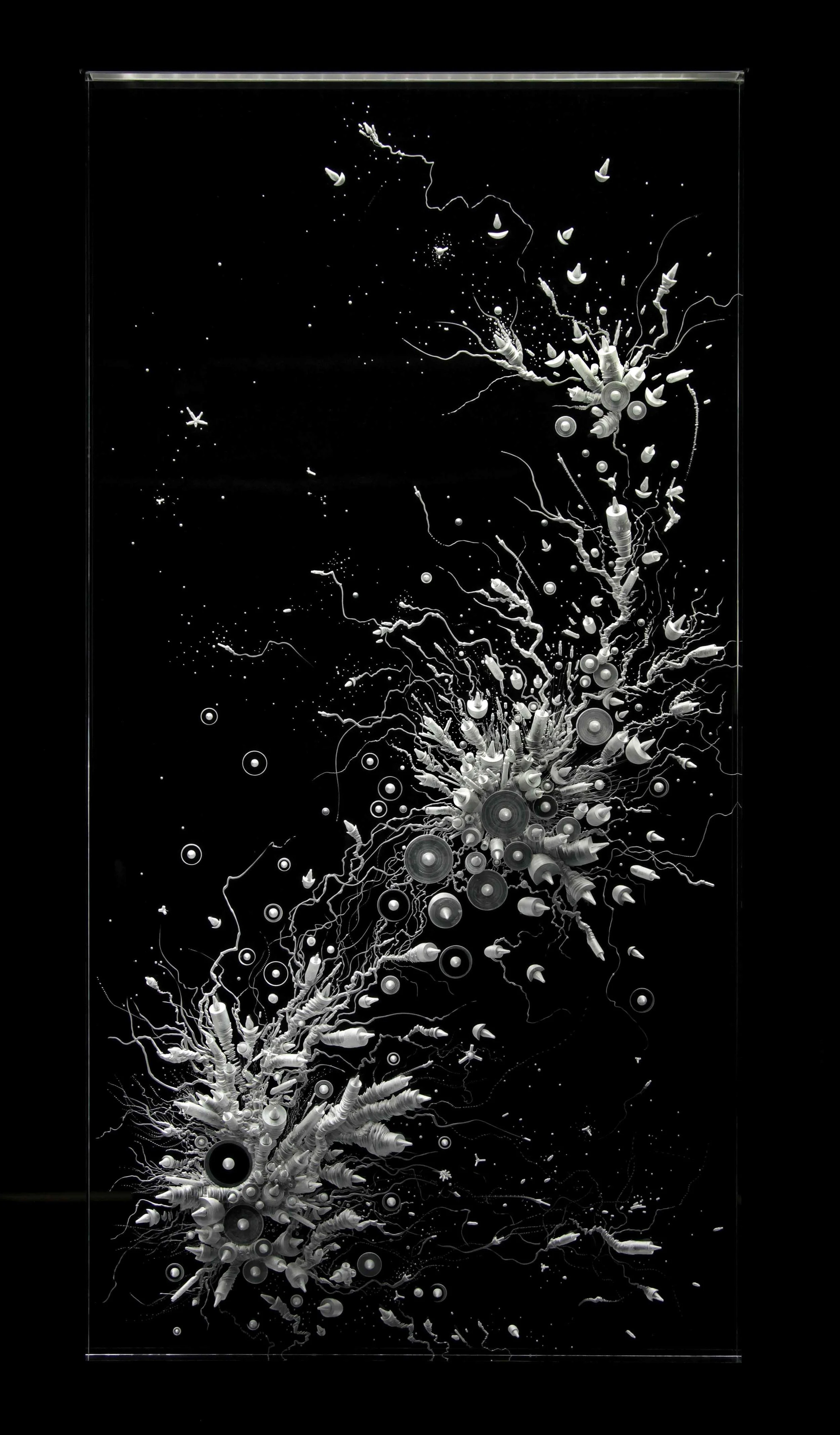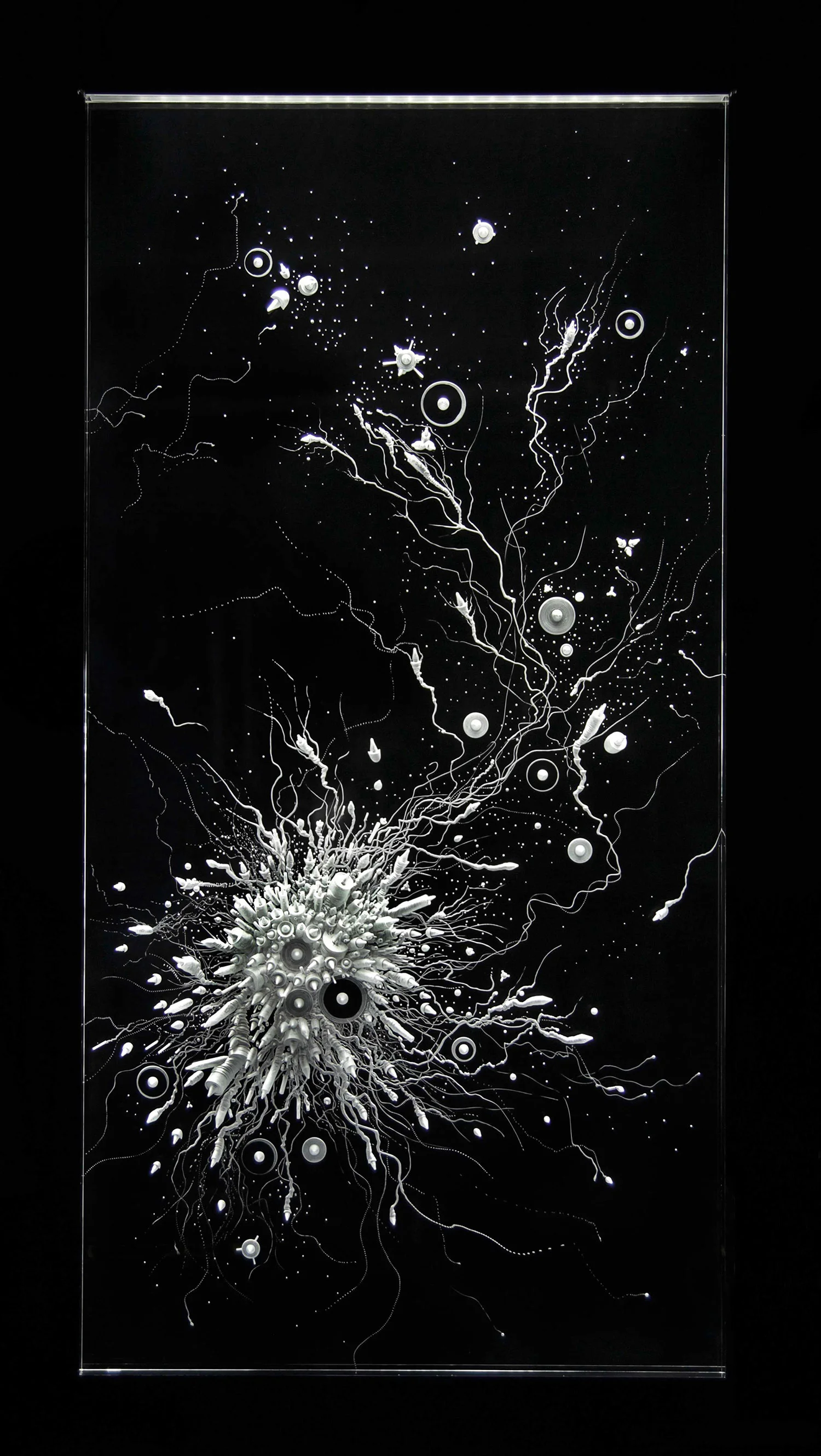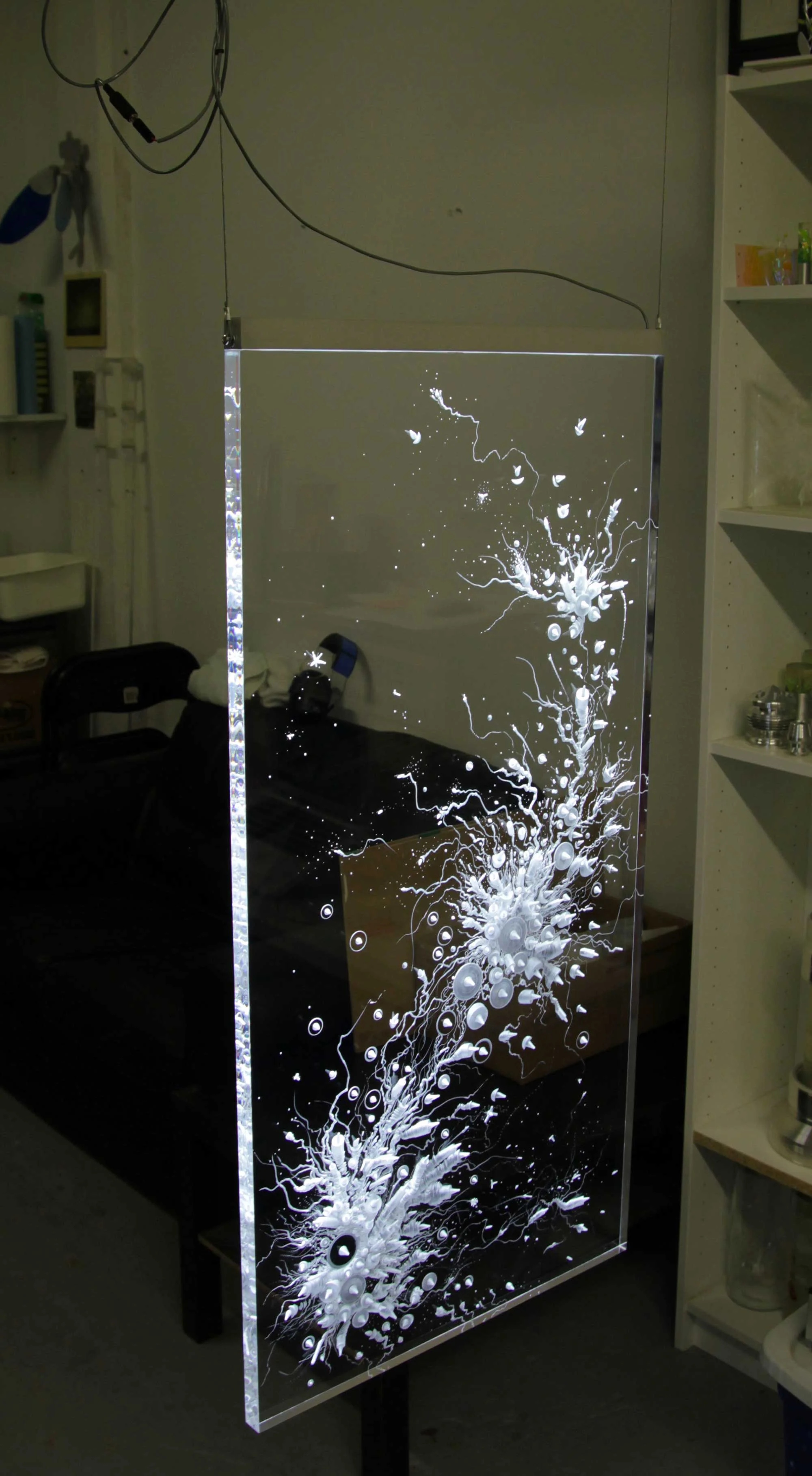 Technique : plexiglas gravé, aluminium, éclairage LED.