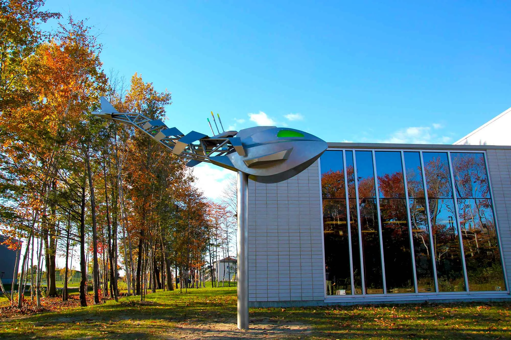 L’immense créature qui se déploie dans l’espace est le fruit du croisement entre des variétés animales et mécaniques. L’ossature métallique d’Hydroïde n’est pas sans évoquer celle d’animaux marins préhistoriques et actuels exposés dans les musées d’histoire naturelle. La morphologie de son squelette rappelle l’armature des grues effectuant le débarquement des marchandises dans les ports et celle de sa tête fait penser à la coque d’un bateau ou d’une motomarine.